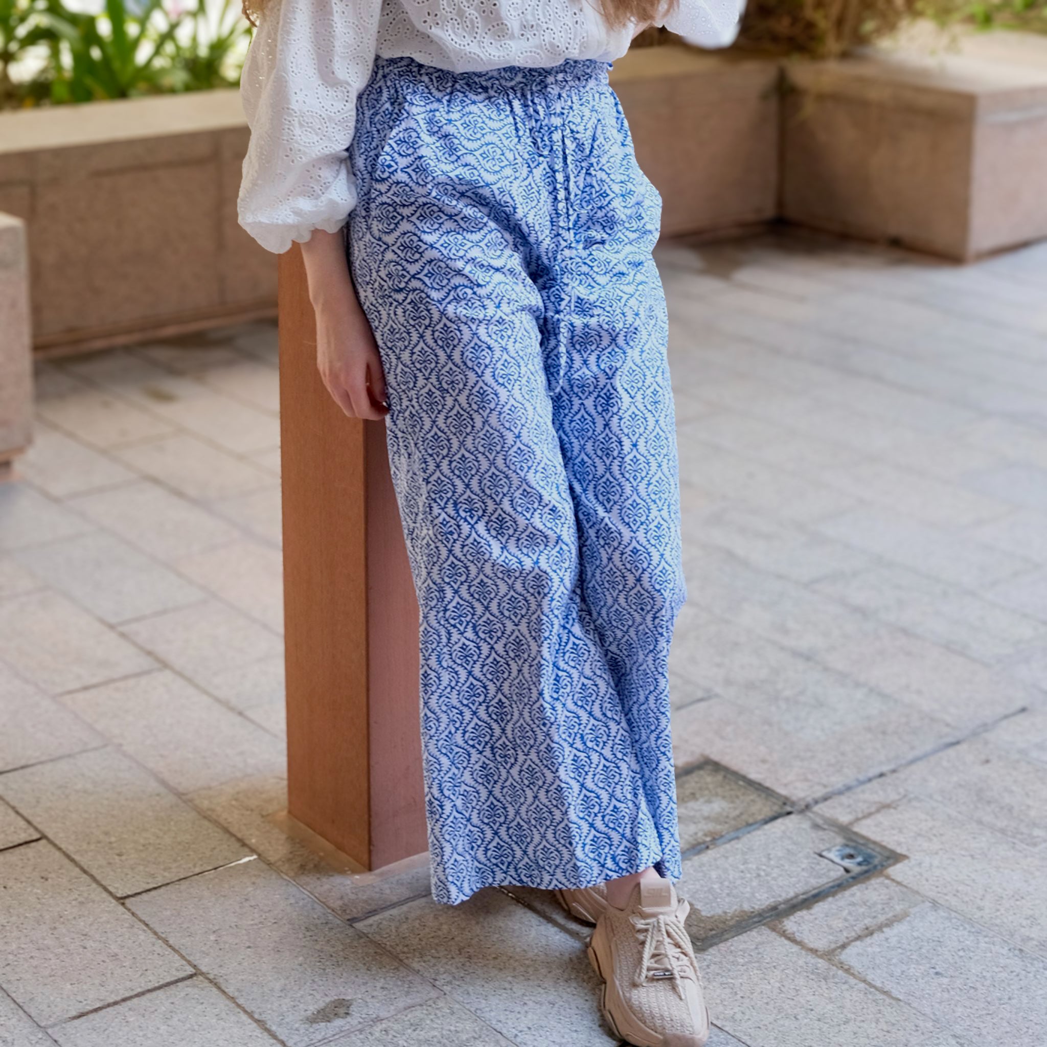Azure Whisper Palazzo is a harmonious blend of comfort and style, perfect for elevating your everyday wardrobe.